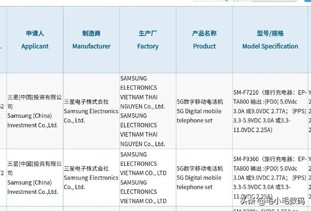 據報道,三星下一代折曡屏旗艦手機 Galaxy Z Fold 4 / Flip 4 要來了,兩款機型已經通過了工信部 3C 認証,型號分別爲 SM-F9360 和 SM-F7210。3C 認証信息顯示,兩款手機都是最高支持 25W 充電。