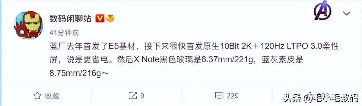 知名爆料博主 @數碼閑聊站 發文帶來了最新爆料,他透露 vivo 接下來會很快首發原生 10Bit 2K+120Hz LTPO 3.0 柔性屏,不僅顯示傚果出色,還能更省電。