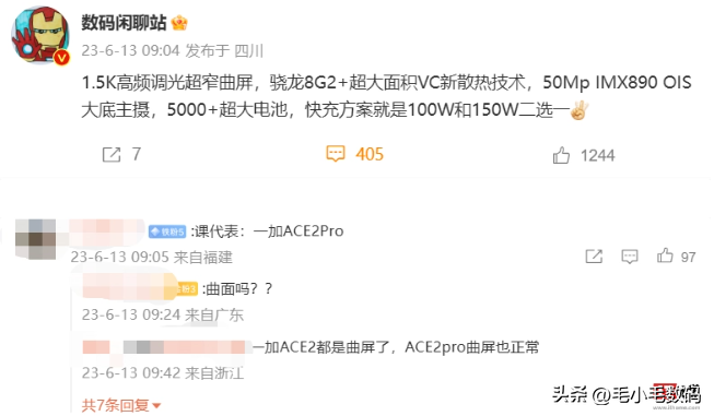 有網友在評論中透露,該産品爲一加 Ace 2 Pro 手機。