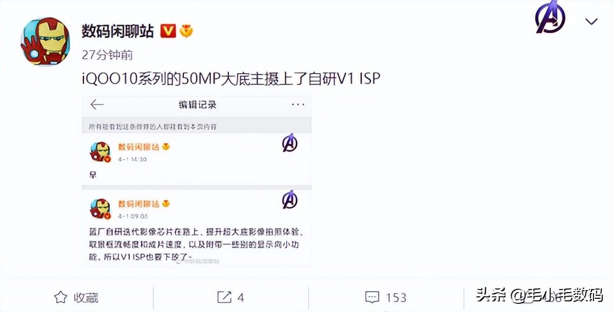 昨日下午,爆料博主 @數碼閑聊站 發文就透露了 iQOO 10 系列的最新消息,稱該機不僅將搭載 5000 萬像素大底主攝,還將搭載 vivo 自研的 V1 ISP 芯片。