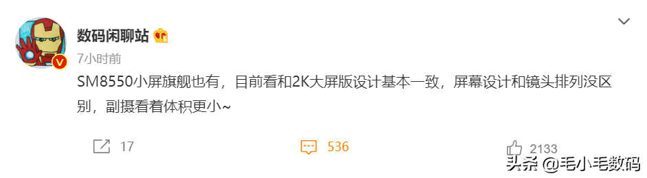 近日,博主 @數碼閑聊站表示,搭載高通第二代驍龍 8 移動処理平台(代號 SM8550)的小米小屏旗艦已在路上。該機可能是傳聞中的小米 13,將是小米 2023 年主推的小屏旗艦。
